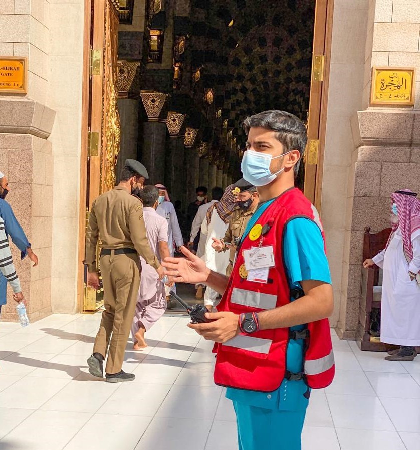 وقال المتحدث الرسمي لهيئة الهلال الأحمر السعودي بمنطقة المدينة المنورة خالد بن مساعد السهلي أن المتطوعين بدأوا العمل بجاهزية كاملة حيث خضعوا لدورات تأهيلية قبل بدء عملهم الفعلي ونالوا قسطا كبيرا من التدريب في الإجراءات الاحترازية والفرز والعمل الإسعافي لقاصدي المسجد النبوي التجهيز للتطوع على عربات كهربائية وأجهزة طبية داخل الحقائب الإسعافية الموجودة مع كل فريق كما تم تخصيص أحد القنوات اللاسلكية لتيسير أعمال التطوع الإسعافي بالمسجد النبوي.