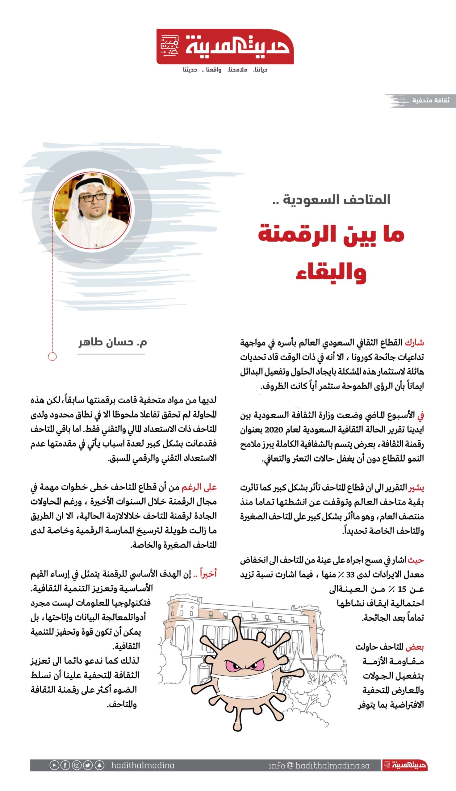 الرئيسية/حسان طاهر/المتاحف السعودية.. مابين الرقمنة والبقاء المتاحف السعودية.. مابين الرقمنة والبقاء 8 أبريل، 2021 فيسبوك تويتر لينكدإن واتساب تيلقرام مشاركة عبر البريد طباعة المتاحف وكورونا 8 أبريل، 2021 فيسبوك تويتر لينكدإن واتساب تيلقرام مشاركة عبر البريد طباعة اظهر المزيد شاركها فيسبوك تويتر لينكدإن واتساب تيلقرام مشاركة عبر البريد طباعة