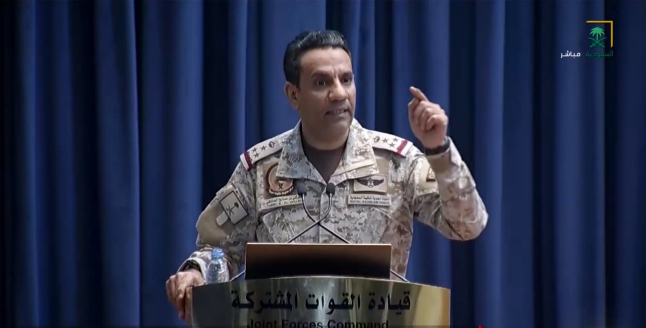 وكشف العميد المالكي أن ميليشيا الحوثي أطلقت 430 صاروخًا باليستيًا و851 مسيرة باتجاه المملكة وأكد أنه تم التصدي لمحاولات الحوثي الفاشلة لاستهداف السعودية، وأن ميليشيا الحوثي فسرت صبرنا الاستراتيجي بطريقة خاطئة. كما إن جهود التحالف أسهمت في تأمين الملاحة في البحر الأحمر، وكشف أن ميليشيا الحوثي هددت الملاحة البحرية بأكثر من 247 لغمًا بحريًا و100 زورق تم إطلاقها من جانب ميليشيا الحوثي ودمرها التحالف.
