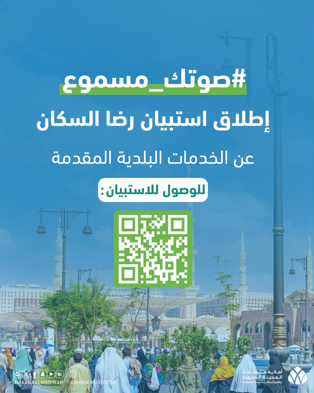 يمثل استبيان «صوتك مسموع» شكلا من أشكال التشاركية مع أهالي المدينة المنورة للوصول إلى خدمات بلدية نموذجية، وجسرا من جسور الارتقاء بخدمات الأحياء ومعالجة قصورها بما يتناغم مع طموحات المواطن.