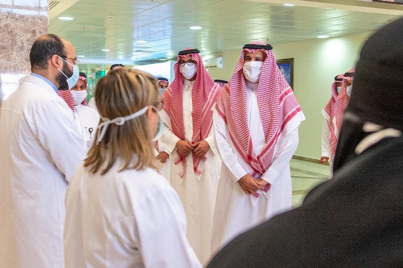 جاء ذلك خلال تفقده ونائبه سير أعمال المرحلة الأولى لمستشفى الملك فيصل التخصصي ومركز الأبحاث والذي بلغت نسبة إنجازه 90 حيث سيكون المستشفى جاهزًا لاستقبال المرضى والمراجعين في الأول من شهر يوليو المُقبل