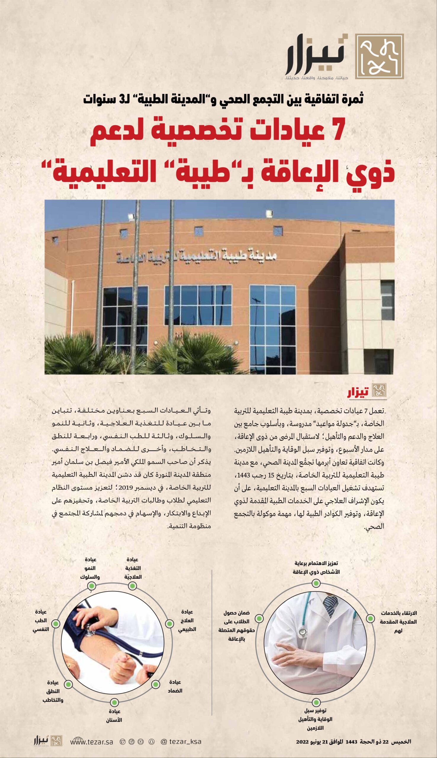 ‏7 عيادات تخصصية لدعم ذوي الإعاقة بـ”طيبة التعليمية”