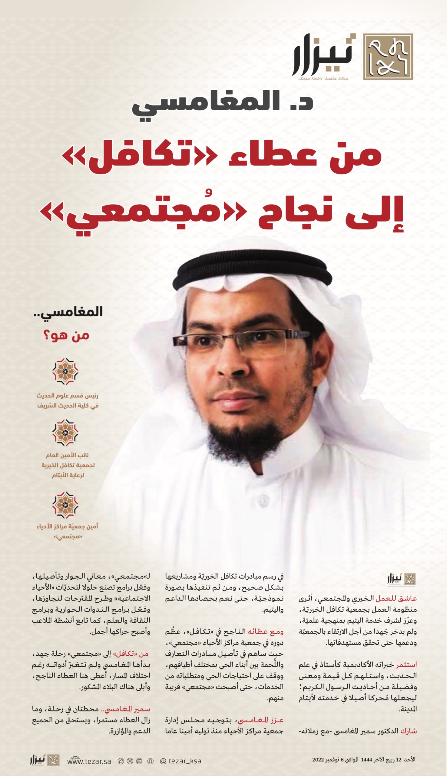الرئيسية/مطويات pdf/الدكتور سمير المغامسي من عطاء “تكافل” إلى نجاح “مُجتمعي” الدكتور سمير المغامسي من عطاء “تكافل” إلى نجاح “مُجتمعي” 6 نوفمبر، 2022 فيسبوك تويتر لينكدإن واتساب تيلقرام مشاركة عبر البريد طباعة المغامسي 3 6 نوفمبر، 2022 فيسبوك تويتر لينكدإن واتساب تيلقرام مشاركة عبر البريد طباعة اظهر المزيد شاركها فيسبوك تويتر لينكدإن واتساب تيلقرام مشاركة عبر البريد طباعة