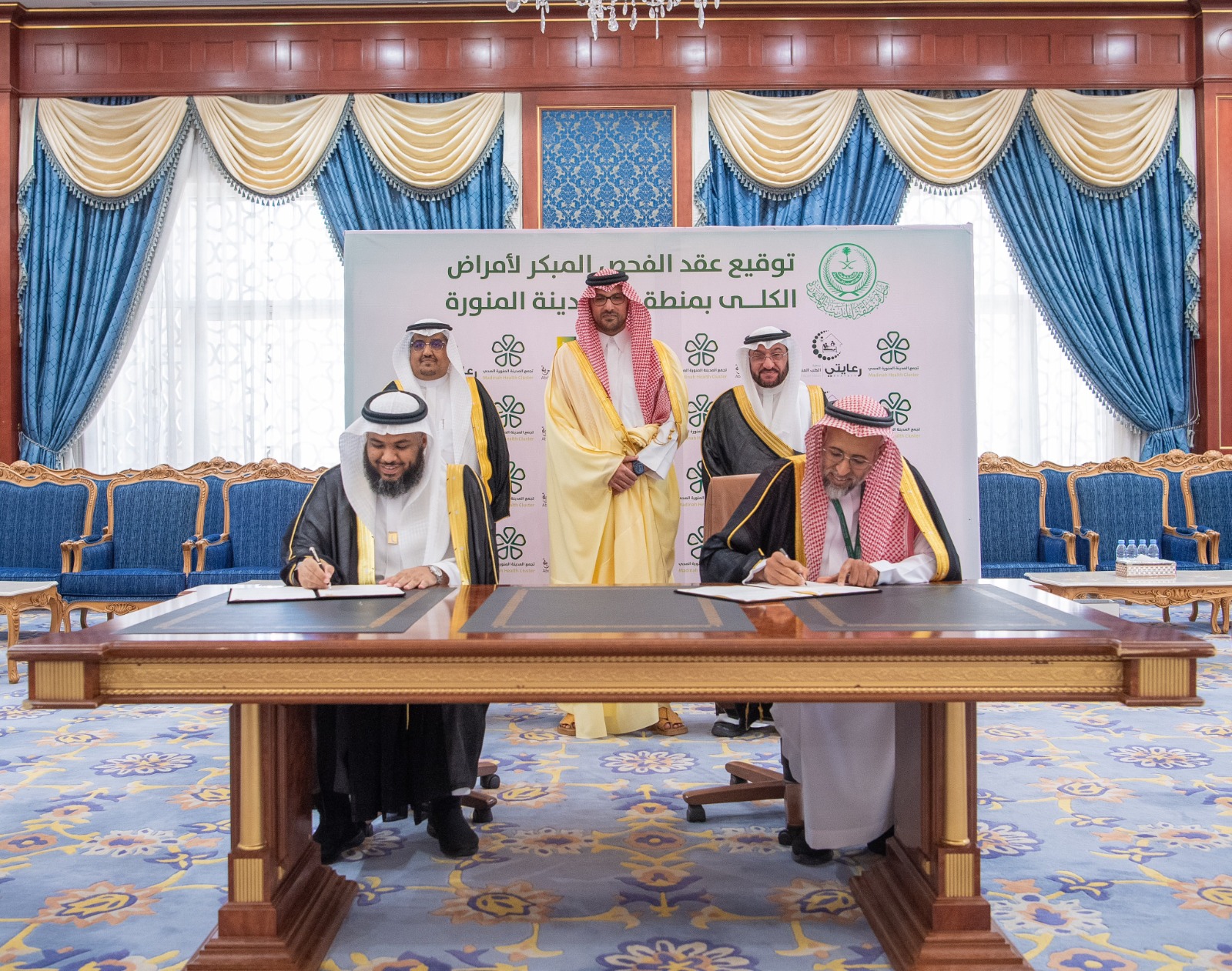 شهد صاحب السمو الملكي الأمير سعود بن خالد الفيصل نائب أمير منطقة المدينة المنورة، مراسم توقيع اتفاقية تعاون بين تجمع المدينة المنورة الصحي، ومؤسسة عبدالله الراجحي الخيرية، وجمعية الطب المنزلي «رعايتي»؛ بهدف تعزيز إجراءات الكشف المبكر عن أمراض الكلى المزمنة أو المعرضين للإصابة، وجمع البيانات وتحليلها في نظام تقني متخصص ومطور، وإحالتهم إلى المنشآت الصحية لتلقي الرعاية الصحية اللازمة.