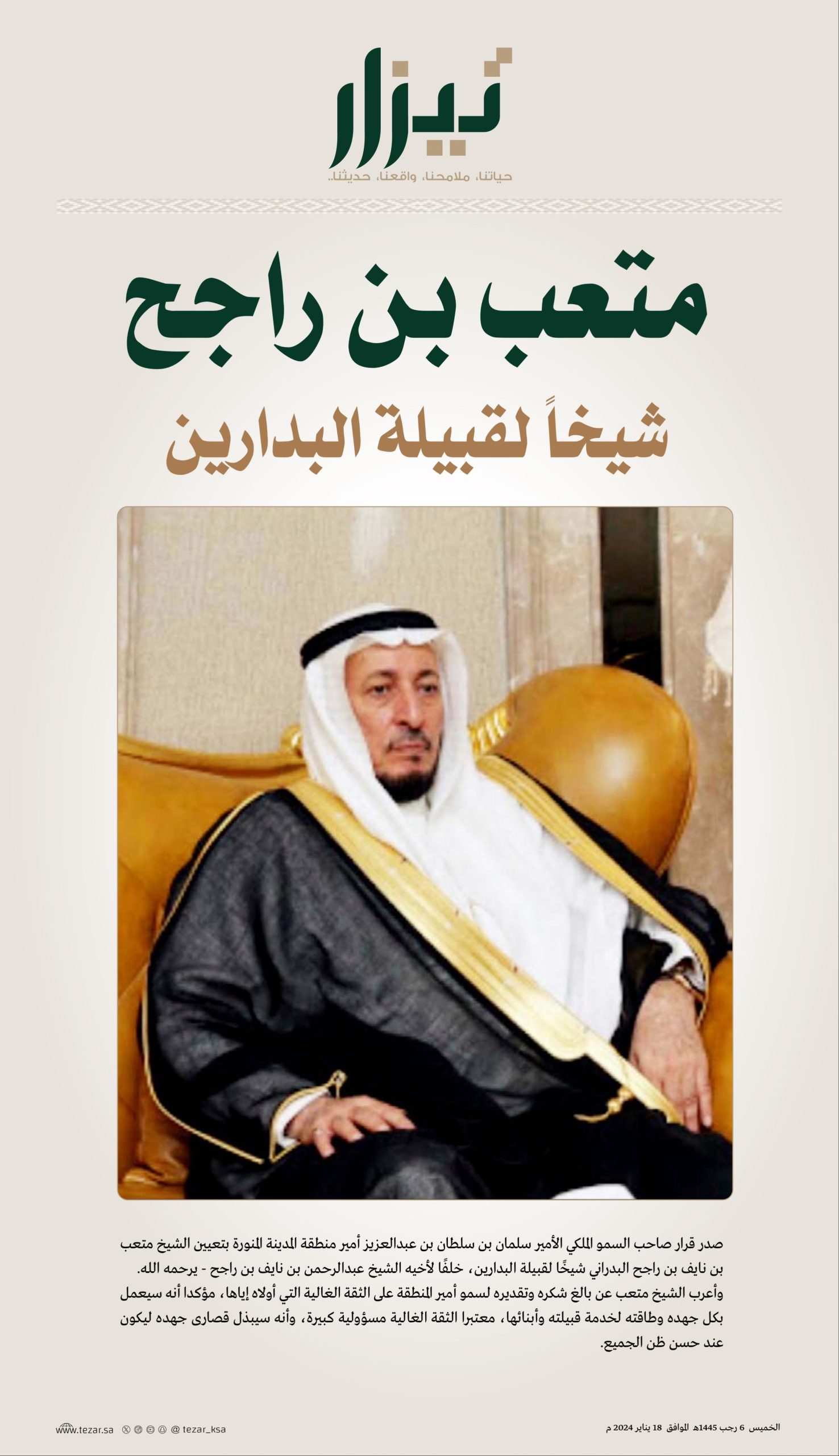 متعب بن راجح.. شيخاً لقبيلة البدارين