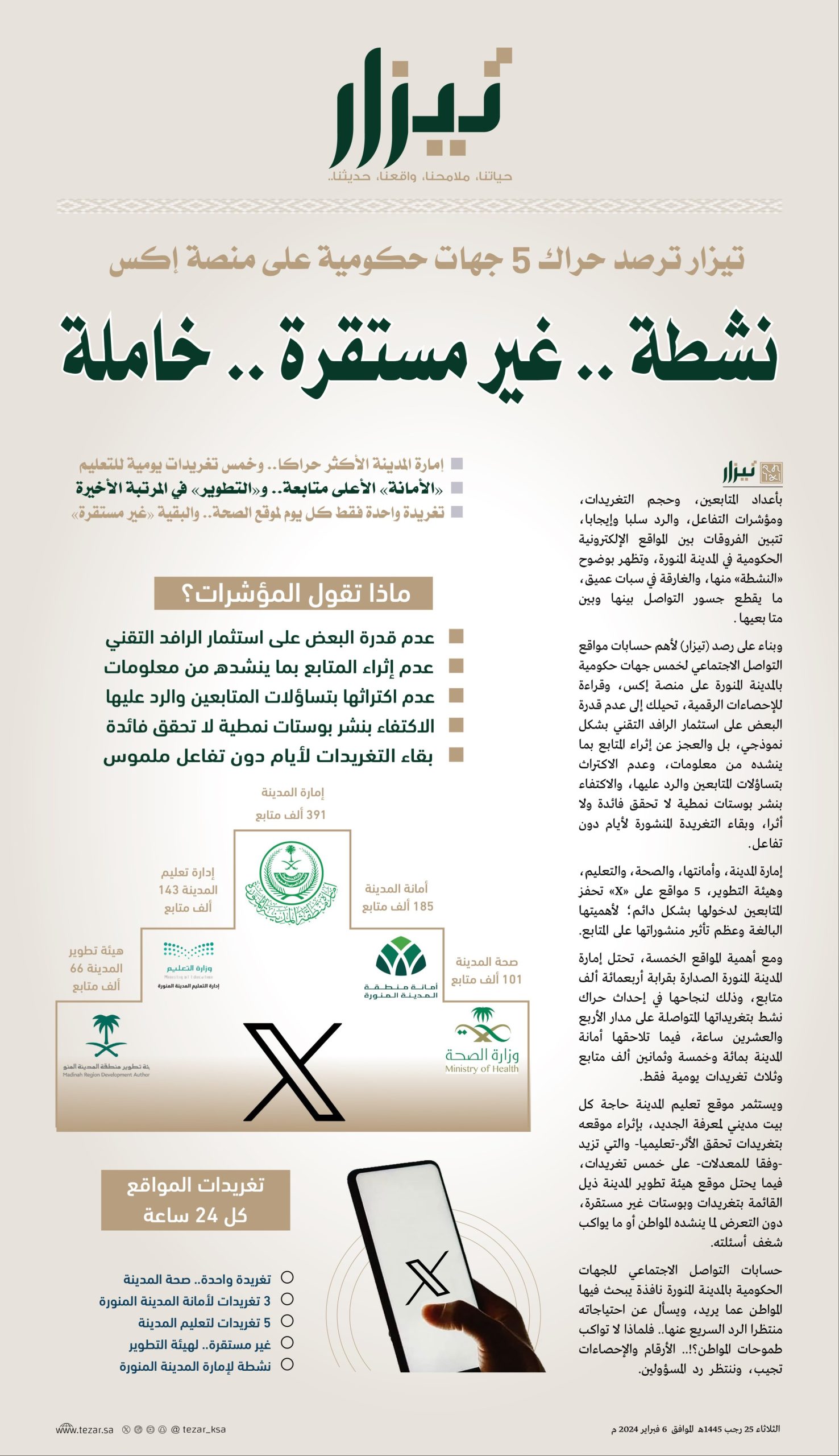 الرئيسية/مطويات pdf/تيزار ترصد حراك 5 جهات حكومية على منصة إكس نشطة .. غير مستقرة .. خاملة تيزار ترصد حراك 5 جهات حكومية على منصة إكس نشطة .. غير مستقرة .. خاملة 8 فبراير، 2024 فيسبوك تويتر لينكدإن واتساب تيلقرام مشاركة عبر البريد طباعة تغريدات 8 فبراير، 2024 فيسبوك تويتر لينكدإن واتساب تيلقرام مشاركة عبر البريد طباعة اظهر المزيد شاركها فيسبوك تويتر لينكدإن واتساب تيلقرام مشاركة عبر البريد طباعة