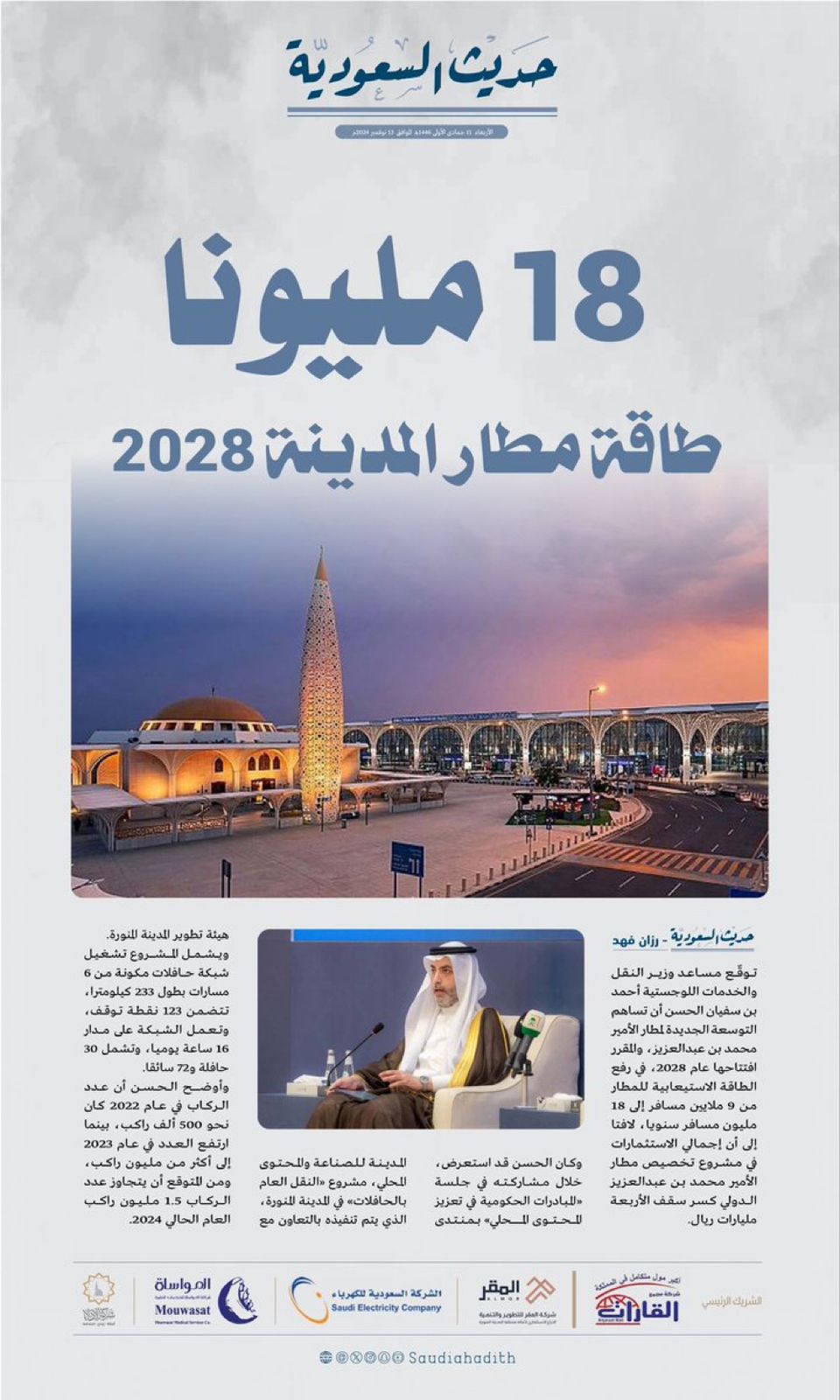 18 مليونا طاقة مطار المدينة 2028