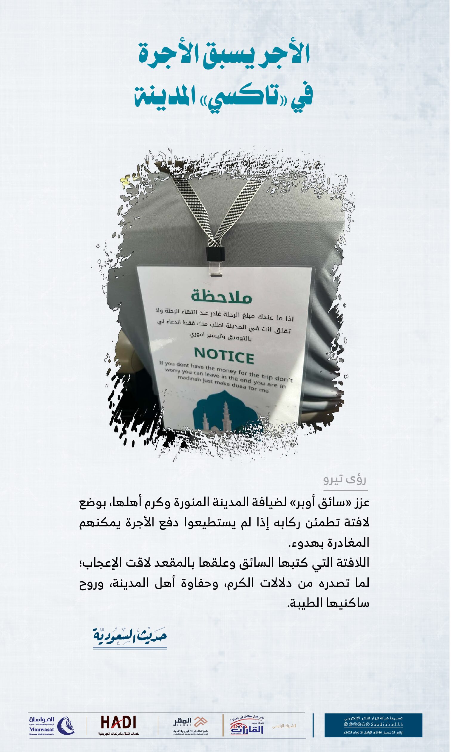 الأجر يسبق الأجرة في «تاكسي» المدينة