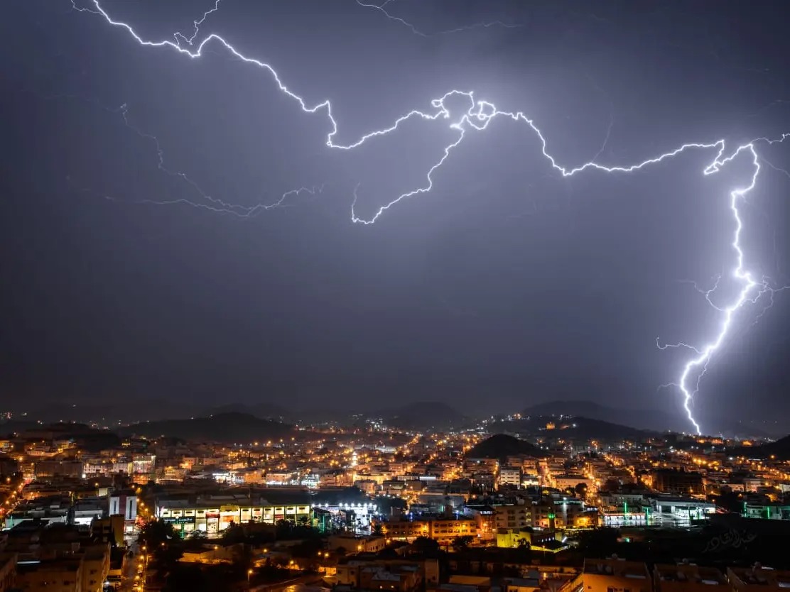البرق والمطر يرسمان لوحة جمال بالمدينة