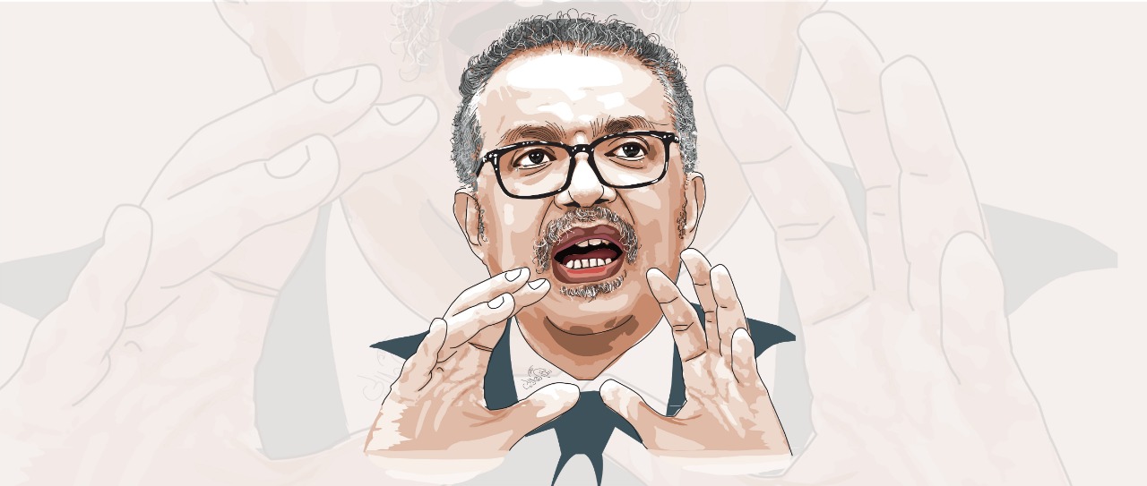 تيدروس أدهانوم صاحب الأصول الأفريقية والذي تولّى منصب وزير الصحة بأثيوبيا ومن ثم الخارجية لمُدد تزيد على 10 سنوات ساقته أقداره في عام 2017 ليتولي منصب مدير عام منظمة الصحة العالمية لخمس سنوات وليصطدم خلالها بالوباء المحيّر ويواجه أصعب ملف تجرعت مرارته البشرية بلا تفريق بين قارة وقارة ووطن وآخر.
