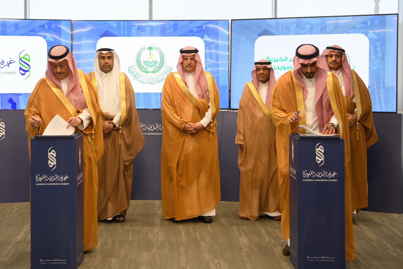 شهد وكيل إمارة منطقة المدينة المنورة توقيع عدد من الاتفاقيات النوعية، من أبرزها اتفاقية تعاون بين غرفة المدينة المنورة وجمعية البر الخيرية بالصويدرة، تهدف إلى دعم القطاع غير الربحي من خلال الاستشارات والتنمية المستدامة وربط الجمعية بالشركاء والجهات المانحة، إضافة إلى مذكرة تفاهم مع شركة بنى المملكة القابضة لتأسيس صندوق استثمار عقاري لتطوير أرض الغرفة، وأخرى مع شركة صناع المنورة لتسويق وتأجير المصانع الجاهزة دعما للمنشآت الصناعية الناشئة.