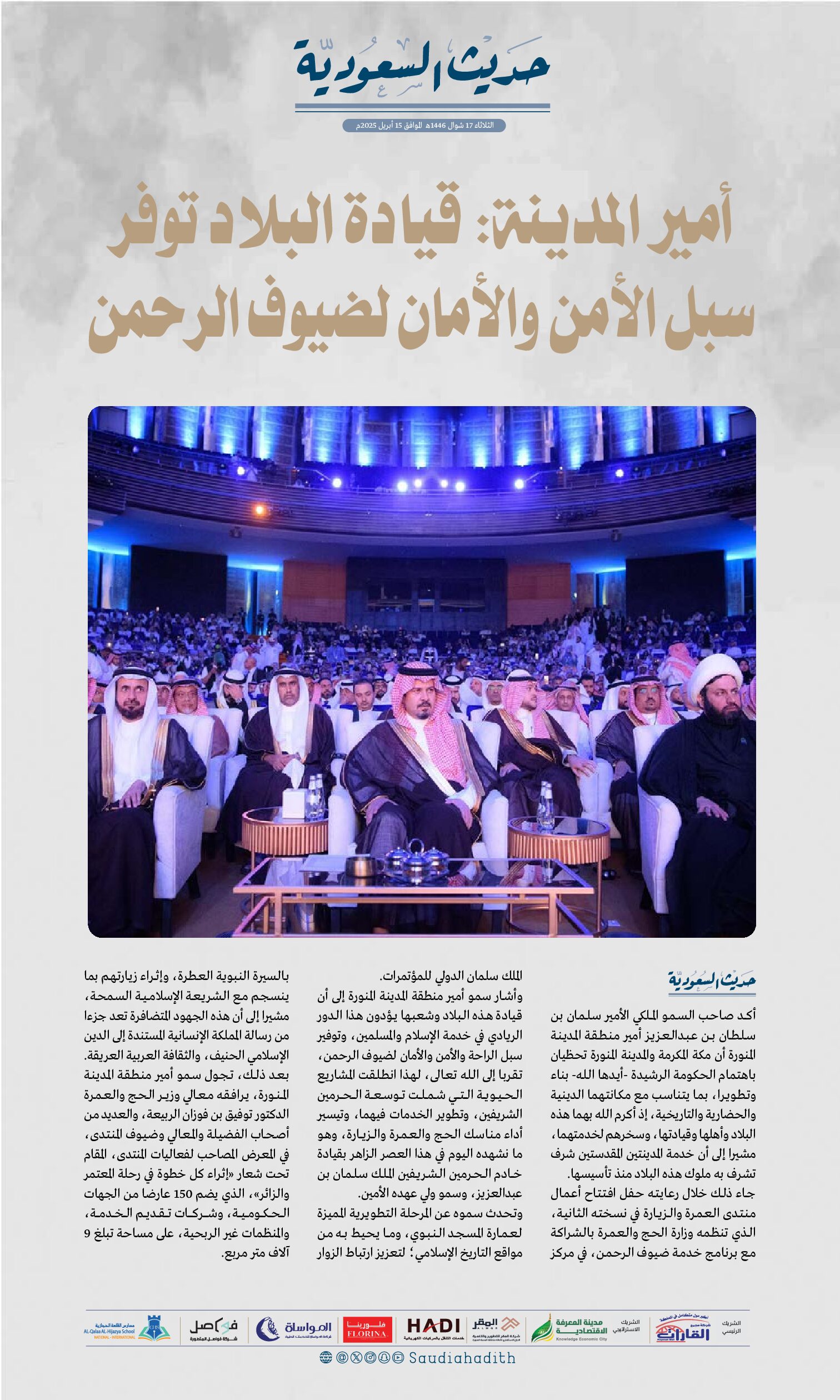 أكمل القراءة »حديث السعودية تحتضن المدينة المنورة، بعد غد، «ندوة البركة» في نسختها الـ 45، وتهدف الندوة التي يحضرها عدد كبير من…