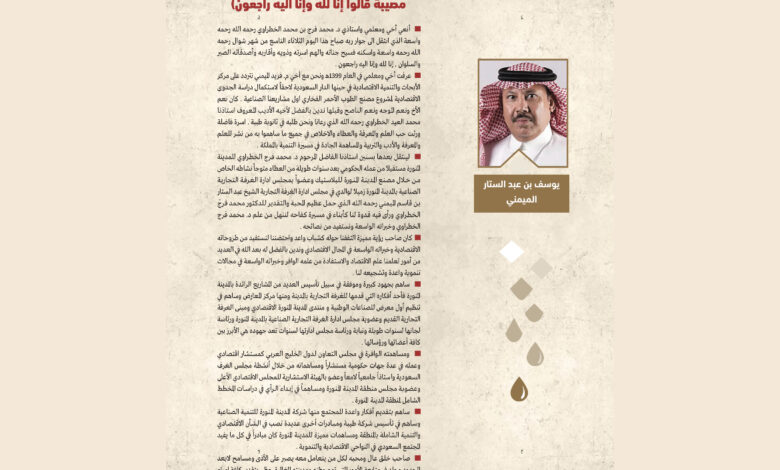 أكمل القراءة »تيزار رحل الدكتور محمد فرج الخطراوي رئيس غرفة المدينة المنورة – سابقا – مُخلّفا وراءه سيرة عطرة، ومشوارا من العمل…