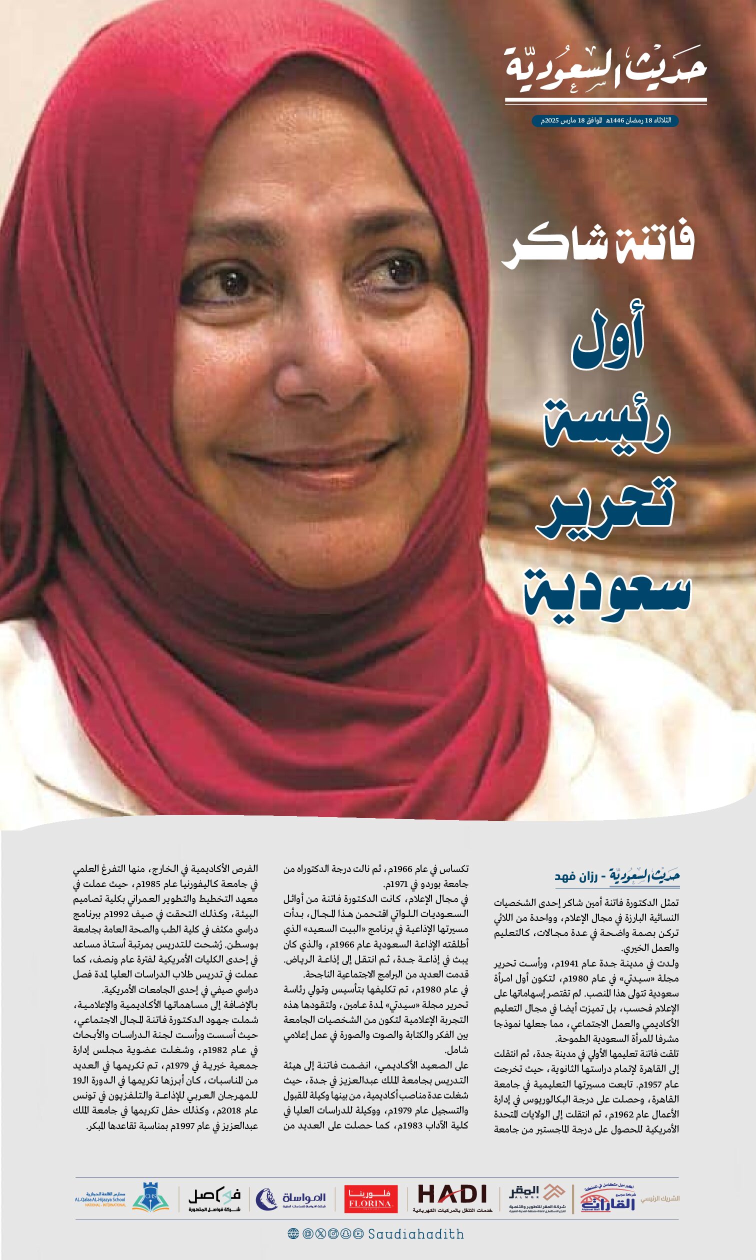 فاتنة شاكر أول رئيسة تحرير سعودية