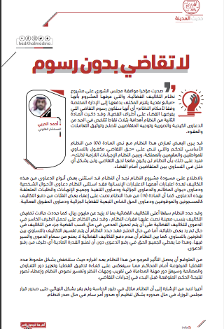 أكمل القراءة »بقلم المستشار القانوني : أحمد الحربي صدرت مؤخرا موافقة مجلس الشورى على مشروع نظام التكاليف القضائية، والتي عرفها المشروع بأنها…