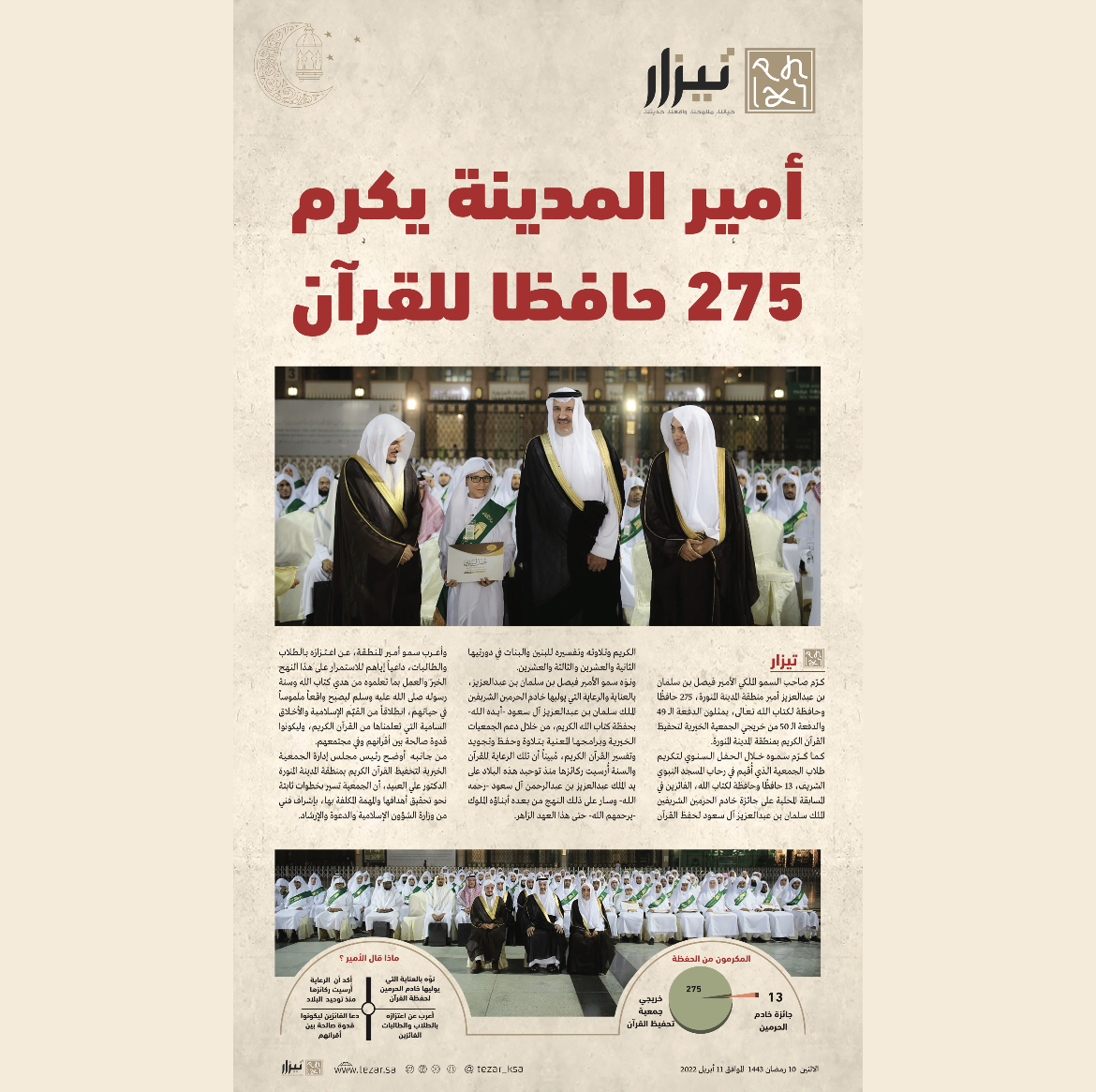 أمير المدينة يُكرم 275 حافظاً وحافظة للقرآن