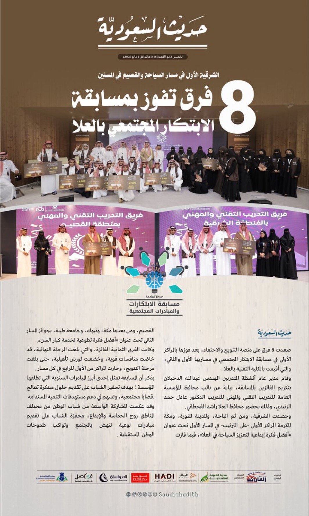 8 فرق تفوز بمسابقة الابتكار المجتمعي بالعلا