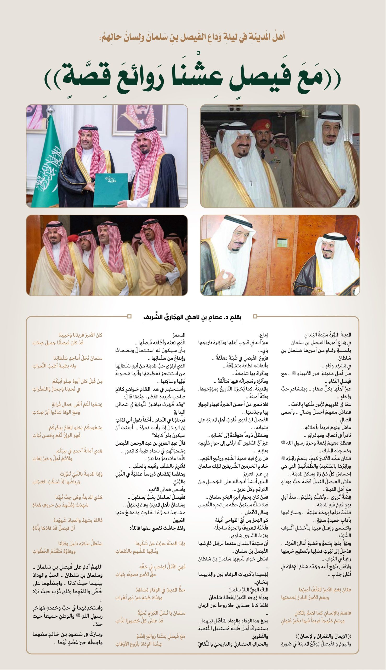 أهل المدينة في ليلة وداع الفيصل بن سلمان، ولسان حالهم: مع فيصل عشنا روائع قصة