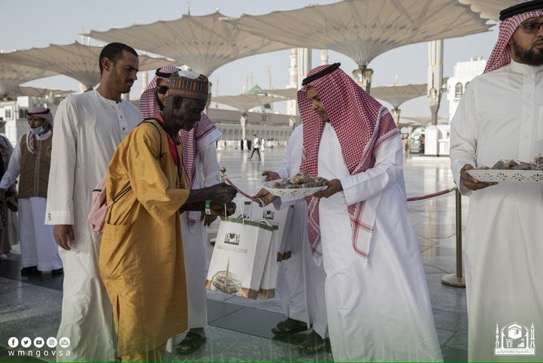 قامت وكالة شؤون المسجد النبوي -ممثلة في وكالة التفويج وإدارة الحشود- بتوديع ضيوف الرحمن بهدايا الورد قبل مغادرتهم لأداء شعيرة الحج، وتأتي مبادرة الاحتفاء ضمن حملة «خدمة الحاج والزائر وسام فخر لنا».